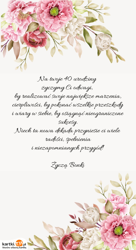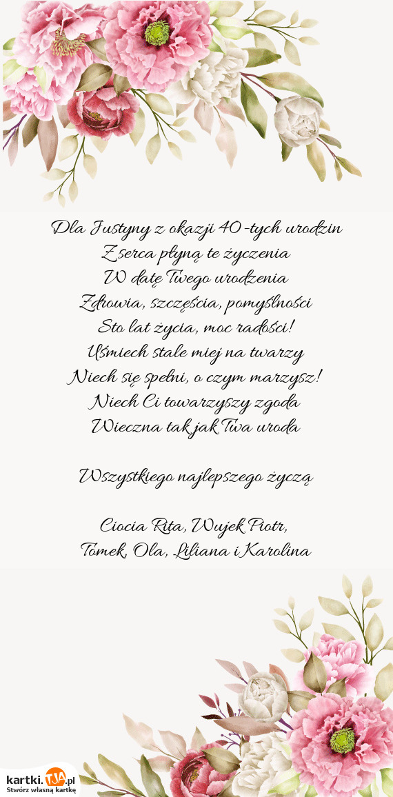 Siostrzyczko, najpiękniejsze życzenia na 40 urodziny dla Ciebie od Siostry z Chłopakami