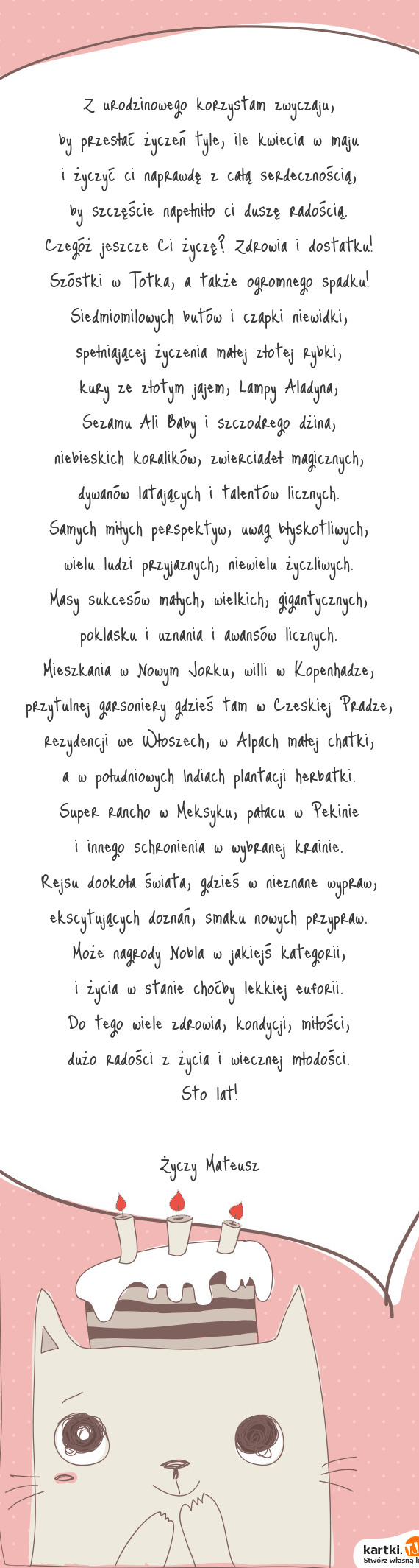 Z urodzinowego korzystam zwyczaju by przesłać życzeń tyle, ile kwiecia w maju i życzyć Ci napr