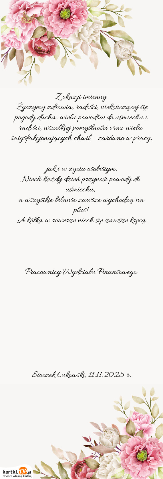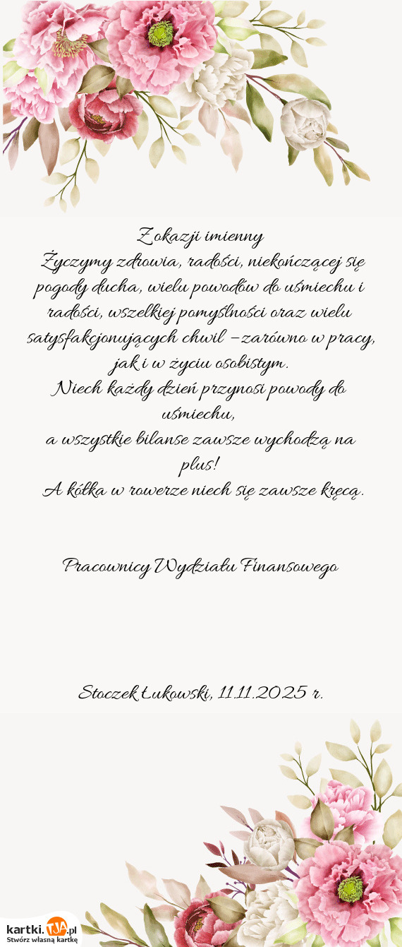Życzymy zdrowia, radości, niekończącej się pogody ducha, wielu powodów do uśmiechu i radośc