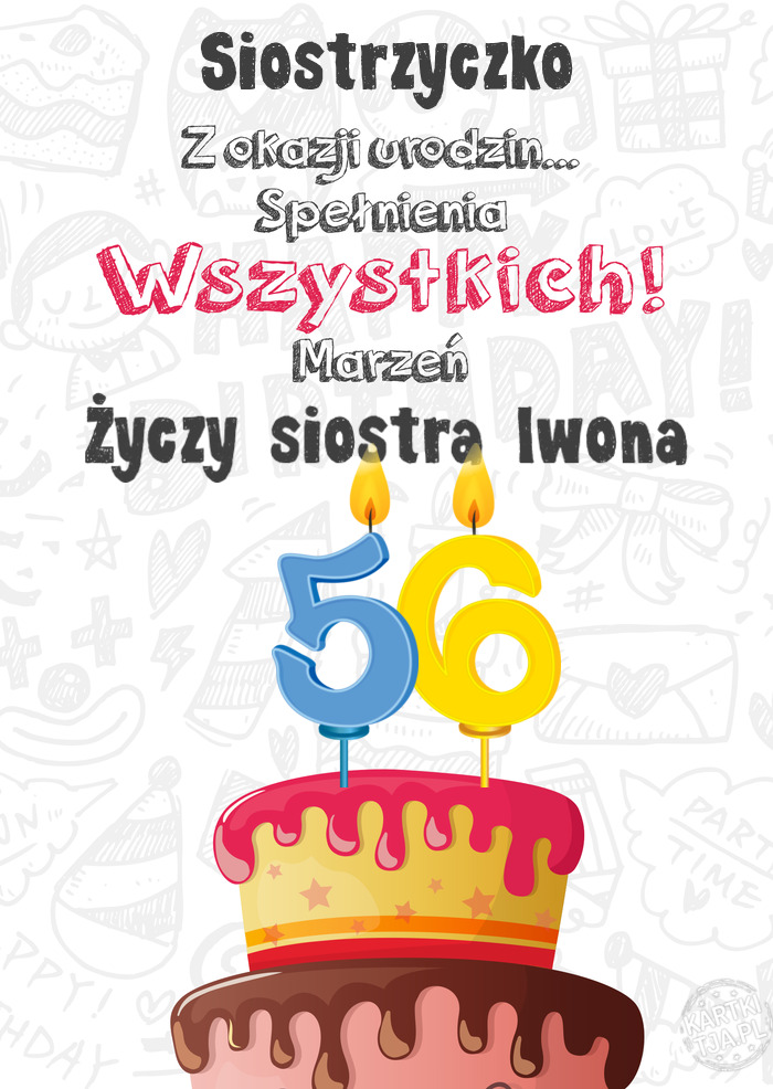 Siostrzyczko Kartka z okazji 56 urodzin, siostra Iwona