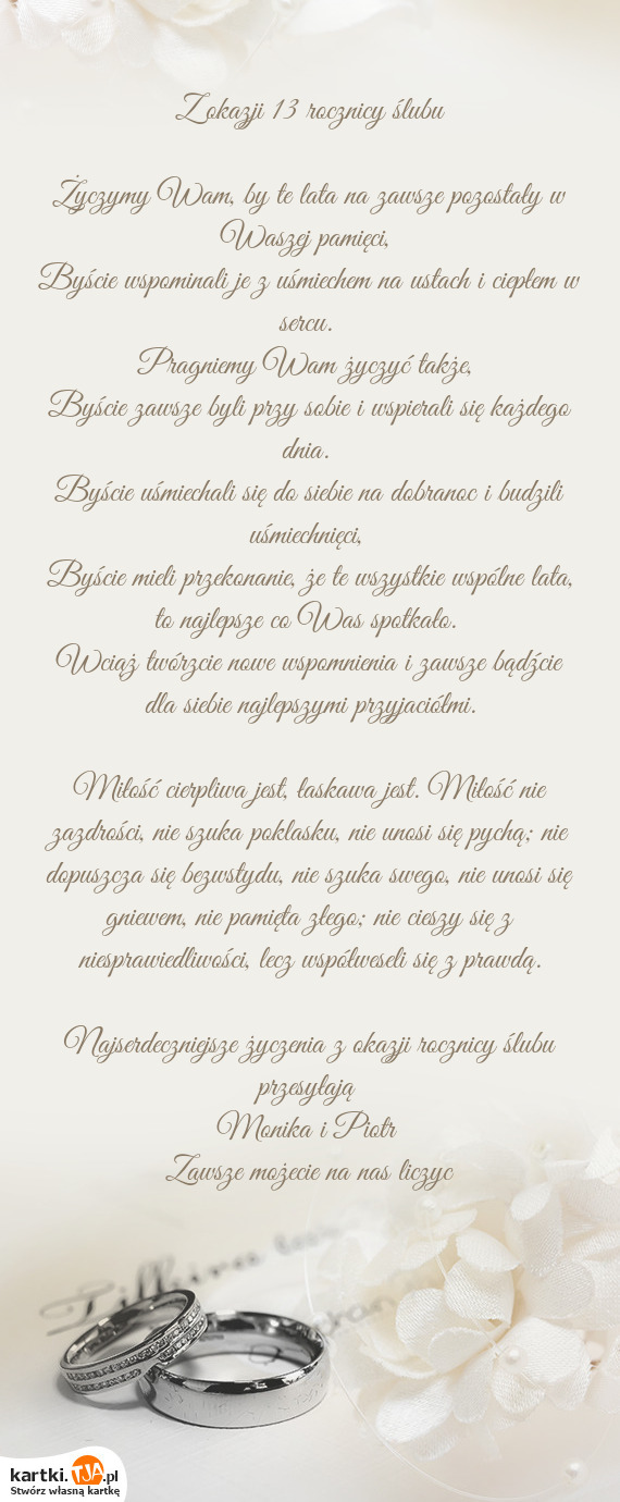 Najserdeczniejsze życzenia z okazji rocznicy ślubu przesyłają