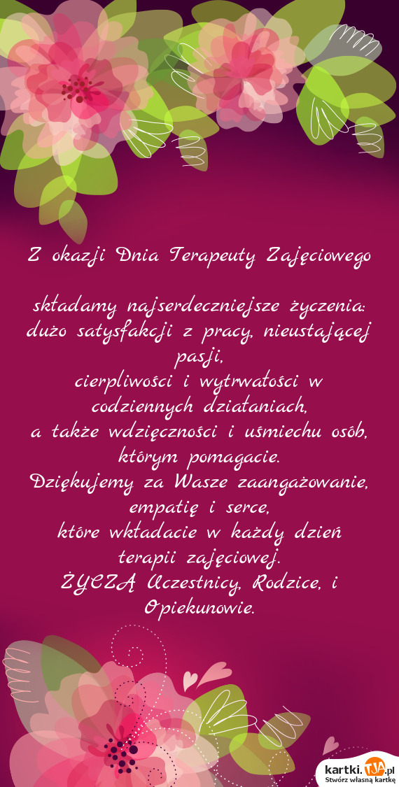 ŻYCZĄ Uczestnicy, Rodzice, i Opiekunowie.