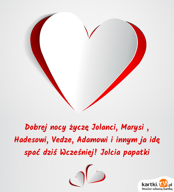 Dobrej nocy życzę Jolanci, Marysi , Hadesowi, Vedze, Adamowi i innym ja idę spać dziś Wcześniej! Jolcia papatki