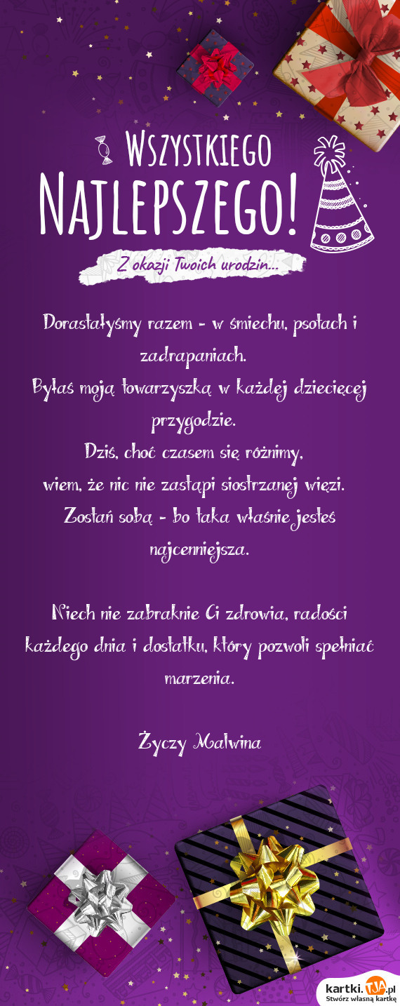 Niech nie zabraknie Ci zdrowia, radości każdego dnia i dostatku, który pozwoli spełniać marzenia.