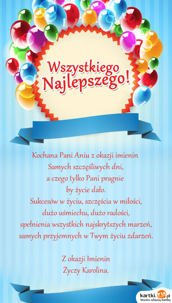 Kochana Pani Aniu z okazji imienin
