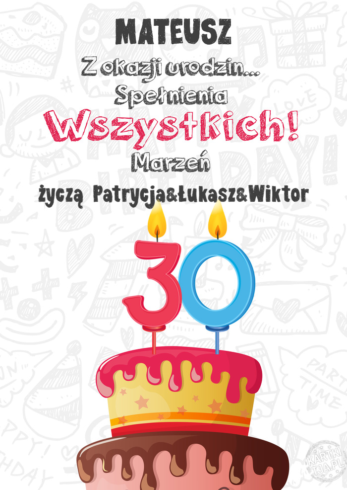 MATEUSZ Kartka z okazji 30 urodzin, życzą Patrycja&Łukasz&Wiktor
