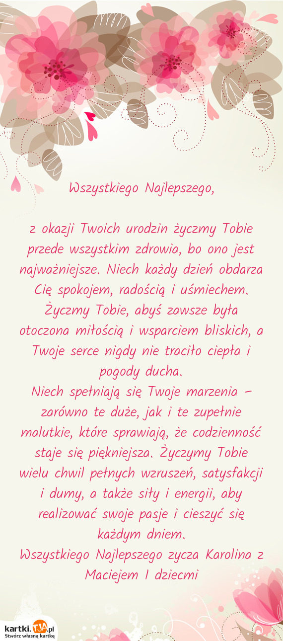 Wszystkiego Najlepszego zycza Karolina z Maciejem I dziecmi