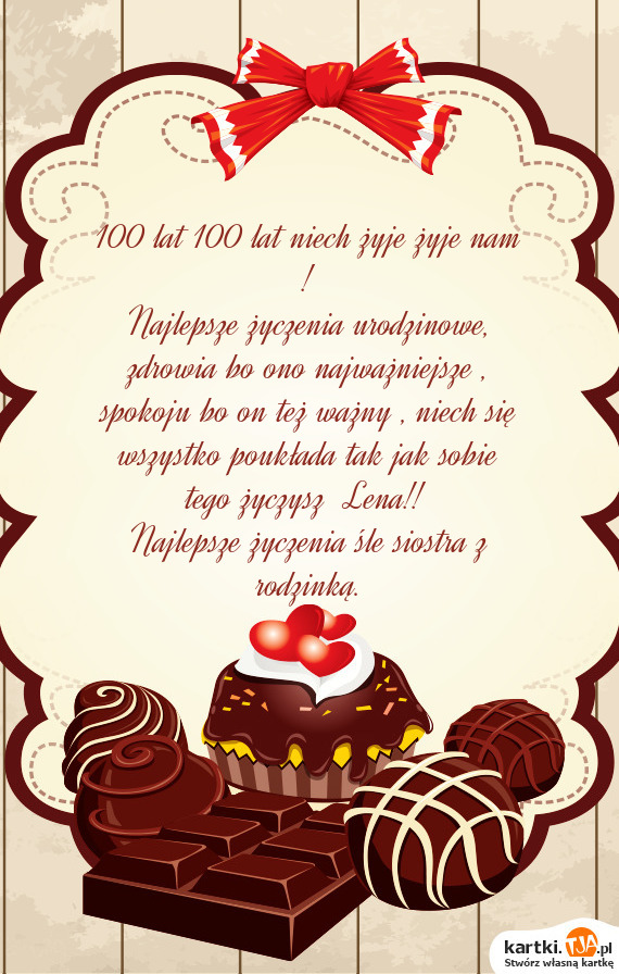 Najlepsze życzenia urodzinowe, zdrowia bo ono najważniejsze , spokoju bo on też ważny , niech się wszystko poukłada tak jak sobie tego życzysz Lena!!