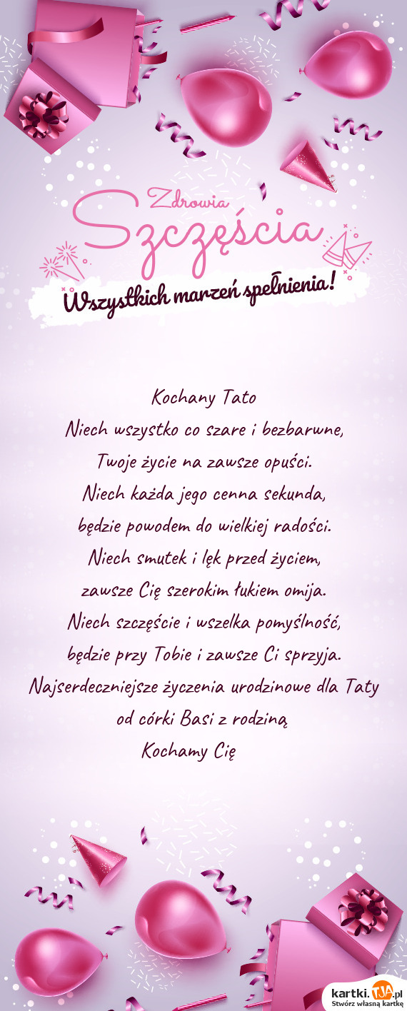Najserdeczniejsze życzenia urodzinowe dla Taty od córki Basi z rodziną