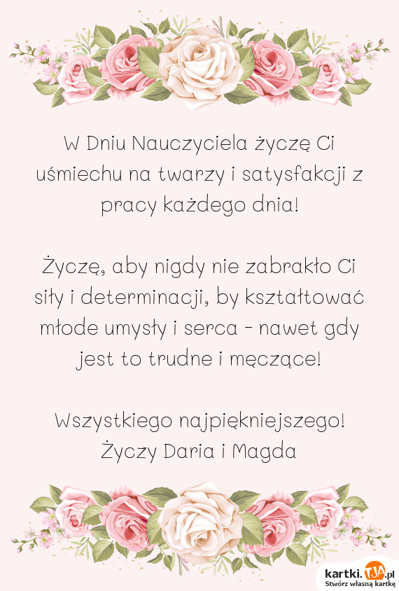 Życzę, aby nigdy nie zabrakło Ci siły i determinacji, by kształtować młode umysły i serca - nawet gdy jest to trudne i męczące!