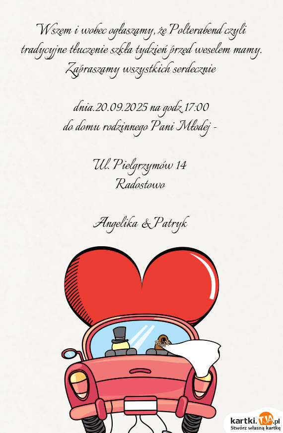 Wszem i wobec ogłaszamy, że Polterabend czyli tradycyjne tłuczenie szkła tydzień przed weselem
