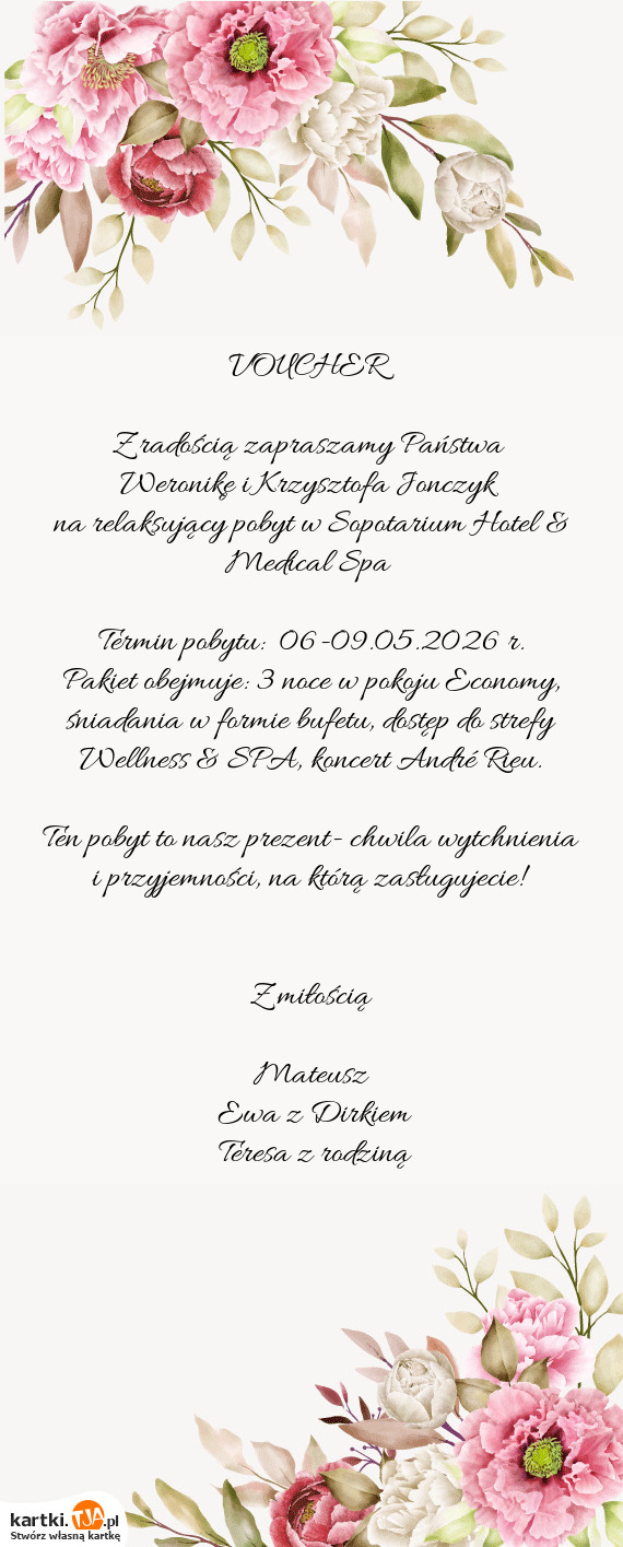 Ten pobyt to nasz prezent- chwila wytchnienia i przyjemności, na którą zasługujecie!