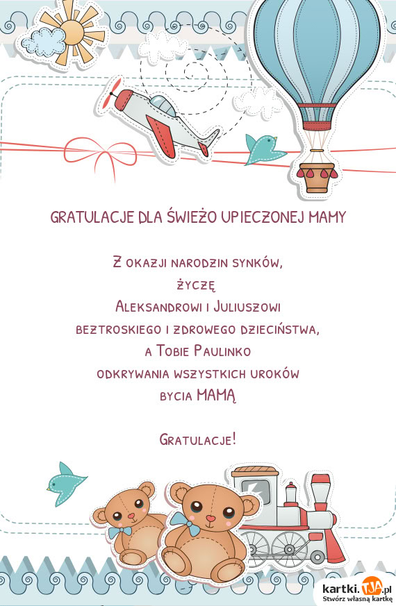 Bardzo przydatną opcją, dla tych osób które nie mają czasu lub po prostu nie chcą tworzyć własnej kartki, jest możliwość wybrania gotowych wzorów, również uporządkowanych według okazji. Jest ich naprawdę wiele, szczególnie tych z okazji popularnych świąt, więc z pewnością każdy wyszuka coś odpowiedniego. Jeżeli mamy zamiar powracać na stronę kartki.tja.pl i tworzyć kolejne kartki dla naszych bliskich, warto stworzyć własne konto. Dzięki temu po zalogowaniu się znajdziemy je wszystkie w zakładce " Moje kartki" i będziemy mogli skorzystać z nich ponownie.