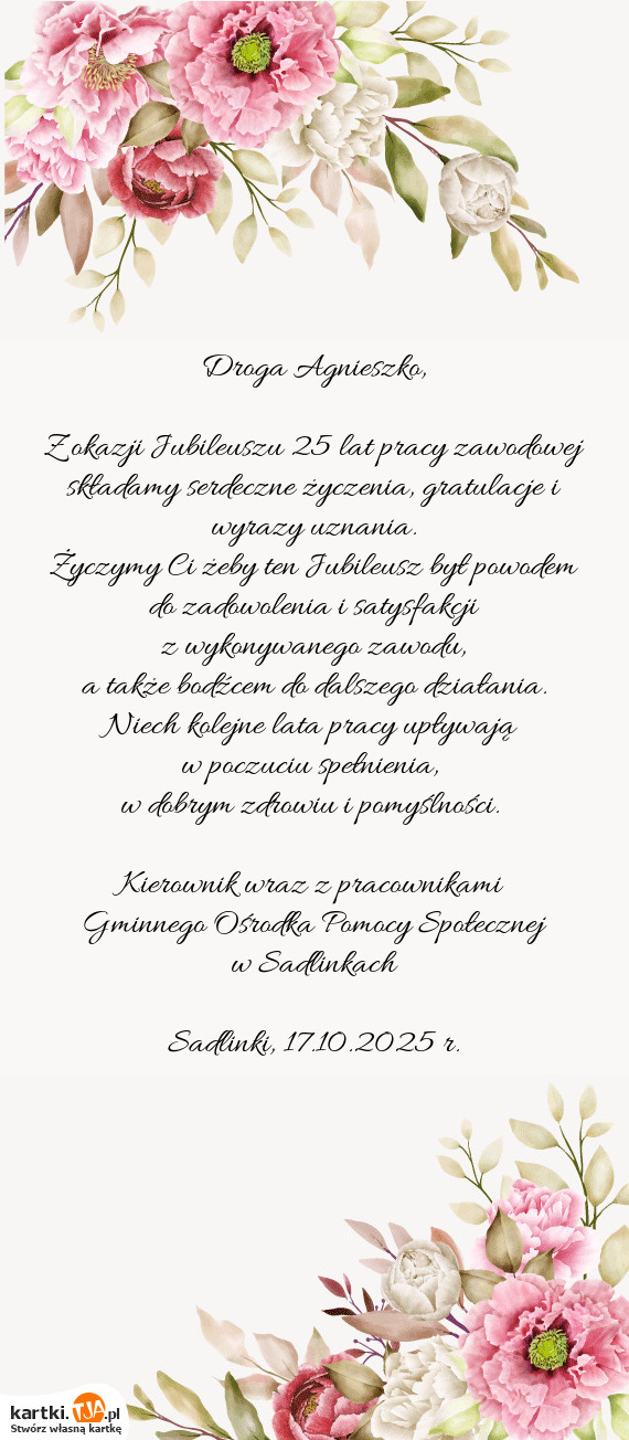 W pierwszym kroku musimy wybrać interesujący nas wzór kartki spośród tych które są dostępne. Możemy przeglądnąć je wszystkie lub wybrać kategorie, która pasuje do okazji, na przykład "świąteczne", "imieninowe" czy "urodzinowe". Kiedy już podejmiemy decyzję, przenosimy się w dół strony, gdzie znajdziemy miejsce na wpisanie odpowiedniego tekstu na kartkę. Każda z nich zawiera już życzenia, które możemy pozostawić jedynie się podpisują lub całkowicie je edytować. Co bardzo ważne z boku mamy cały czas podgląd na wygląd kartki i na wszystkie zmiany, które wprowadzamy. Jeśli uznamy, że kartka jest gotowa wybieramy opcję jej pobranie lub też zapisania i wysłania do wybranej osoby poprzez skopiowanie odpowiedniego linka.