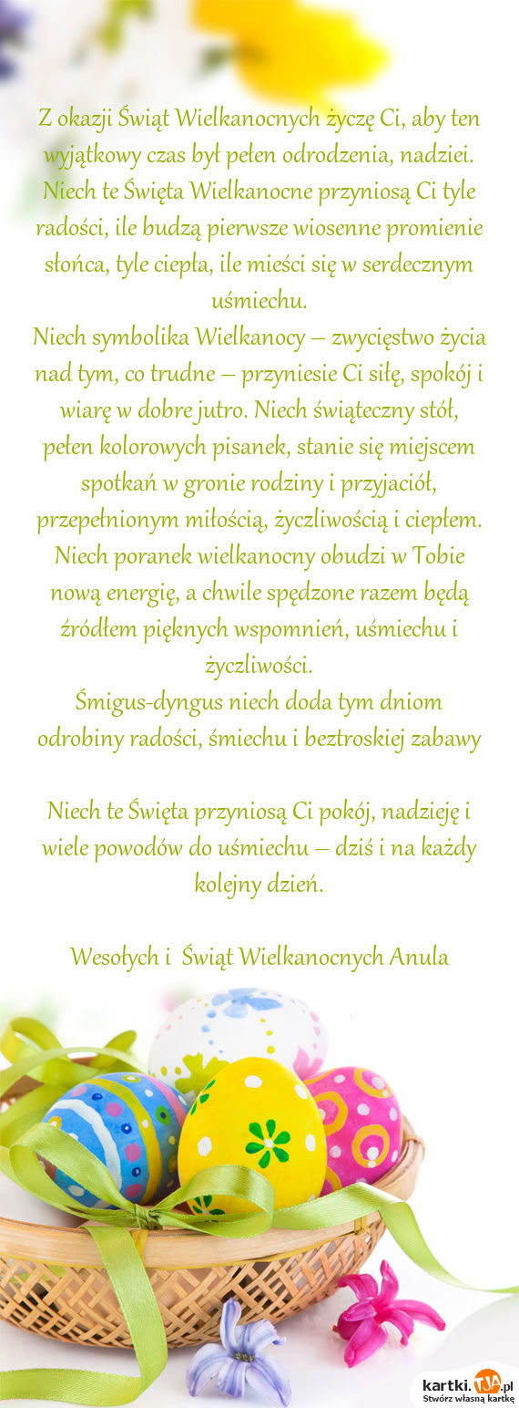 Bardzo przydatną opcją, dla tych osób które nie mają czasu lub po prostu nie chcą tworzyć własnej kartki, jest możliwość wybrania gotowych wzorów, również uporządkowanych według okazji. Jest ich naprawdę wiele, szczególnie tych z okazji popularnych świąt, więc z pewnością każdy wyszuka coś odpowiedniego. Jeżeli mamy zamiar powracać na stronę kartki.tja.pl i tworzyć kolejne kartki dla naszych bliskich, warto stworzyć własne konto. Dzięki temu po zalogowaniu się znajdziemy je wszystkie w zakładce " Moje kartki" i będziemy mogli skorzystać z nich ponownie.
