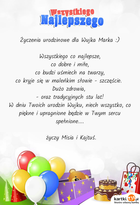 Bardzo przydatną opcją, dla tych osób które nie mają czasu lub po prostu nie chcą tworzyć własnej kartki, jest możliwość wybrania gotowych wzorów, również uporządkowanych według okazji. Jest ich naprawdę wiele, szczególnie tych z okazji popularnych świąt, więc z pewnością każdy wyszuka coś odpowiedniego. Jeżeli mamy zamiar powracać na stronę kartki.tja.pl i tworzyć kolejne kartki dla naszych bliskich, warto stworzyć własne konto. Dzięki temu po zalogowaniu się znajdziemy je wszystkie w zakładce " Moje kartki" i będziemy mogli skorzystać z nich ponownie.