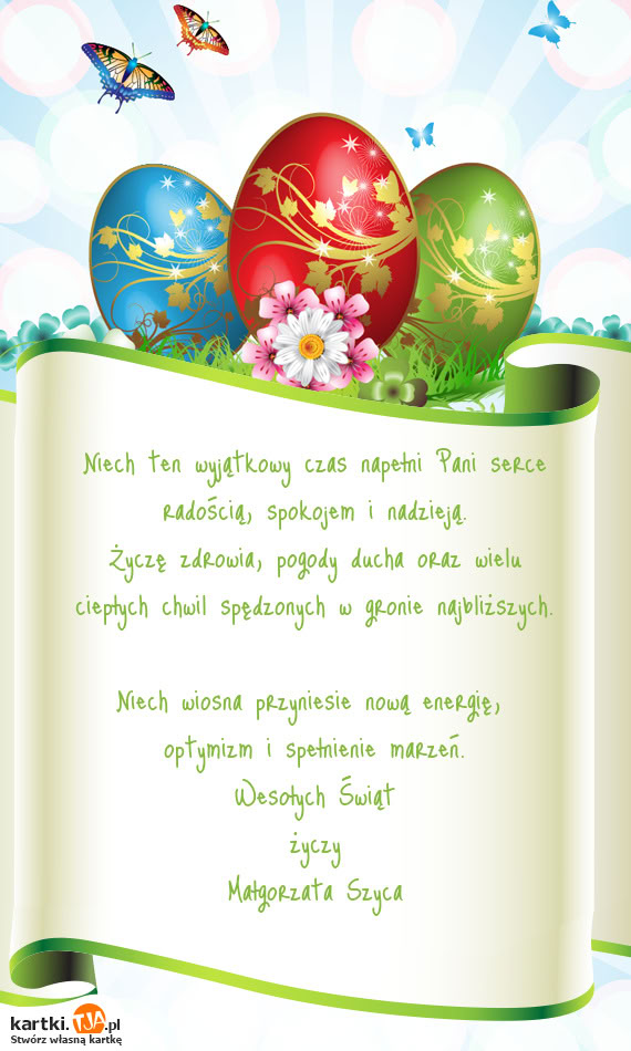 Bardzo przydatną opcją, dla tych osób które nie mają czasu lub po prostu nie chcą tworzyć własnej kartki, jest możliwość wybrania gotowych wzorów, również uporządkowanych według okazji. Jest ich naprawdę wiele, szczególnie tych z okazji popularnych świąt, więc z pewnością każdy wyszuka coś odpowiedniego. Jeżeli mamy zamiar powracać na stronę kartki.tja.pl i tworzyć kolejne kartki dla naszych bliskich, warto stworzyć własne konto. Dzięki temu po zalogowaniu się znajdziemy je wszystkie w zakładce " Moje kartki" i będziemy mogli skorzystać z nich ponownie.