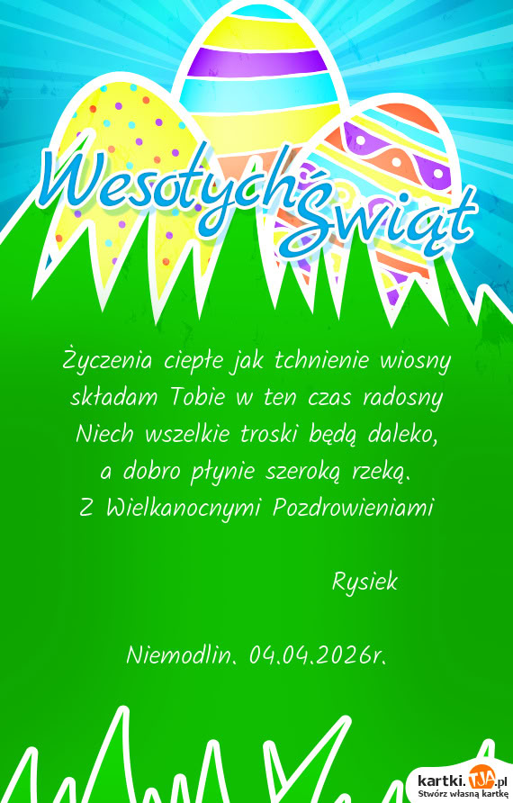 Bardzo przydatną opcją, dla tych osób które nie mają czasu lub po prostu nie chcą tworzyć własnej kartki, jest możliwość wybrania gotowych wzorów, również uporządkowanych według okazji. Jest ich naprawdę wiele, szczególnie tych z okazji popularnych świąt, więc z pewnością każdy wyszuka coś odpowiedniego. Jeżeli mamy zamiar powracać na stronę kartki.tja.pl i tworzyć kolejne kartki dla naszych bliskich, warto stworzyć własne konto. Dzięki temu po zalogowaniu się znajdziemy je wszystkie w zakładce " Moje kartki" i będziemy mogli skorzystać z nich ponownie.