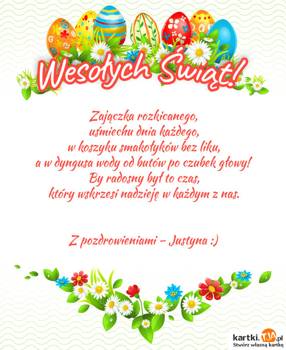 Bardzo przydatną opcją, dla tych osób które nie mają czasu lub po prostu nie chcą tworzyć własnej kartki, jest możliwość wybrania gotowych wzorów, również uporządkowanych według okazji. Jest ich naprawdę wiele, szczególnie tych z okazji popularnych świąt, więc z pewnością każdy wyszuka coś odpowiedniego. Jeżeli mamy zamiar powracać na stronę kartki.tja.pl i tworzyć kolejne kartki dla naszych bliskich, warto stworzyć własne konto. Dzięki temu po zalogowaniu się znajdziemy je wszystkie w zakładce " Moje kartki" i będziemy mogli skorzystać z nich ponownie.