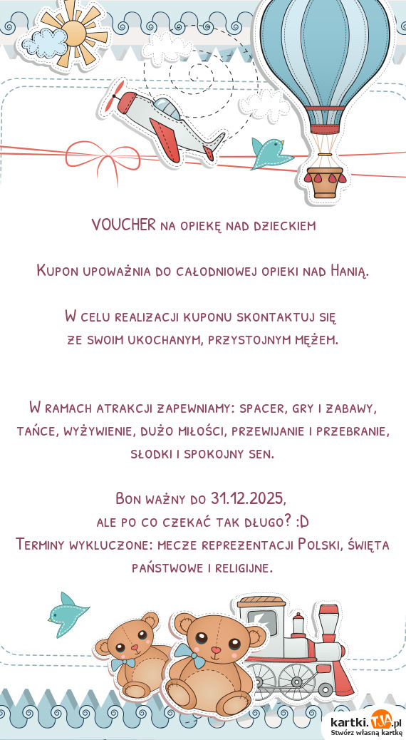 Bardzo przydatną opcją, dla tych osób które nie mają czasu lub po prostu nie chcą tworzyć własnej kartki, jest możliwość wybrania gotowych wzorów, również uporządkowanych według okazji. Jest ich naprawdę wiele, szczególnie tych z okazji popularnych świąt, więc z pewnością każdy wyszuka coś odpowiedniego. Jeżeli mamy zamiar powracać na stronę kartki.tja.pl i tworzyć kolejne kartki dla naszych bliskich, warto stworzyć własne konto. Dzięki temu po zalogowaniu się znajdziemy je wszystkie w zakładce " Moje kartki" i będziemy mogli skorzystać z nich ponownie.