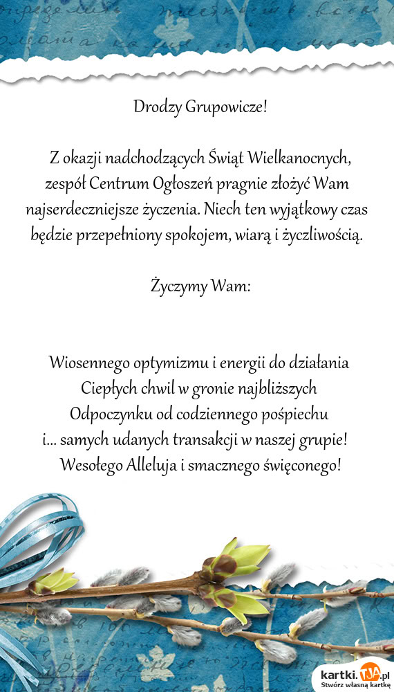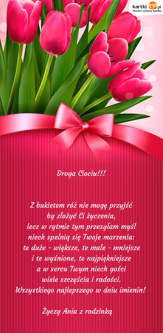 Bardzo przydatną opcją, dla tych osób które nie mają czasu lub po prostu nie chcą tworzyć własnej kartki, jest możliwość wybrania gotowych wzorów, również uporządkowanych według okazji. Jest ich naprawdę wiele, szczególnie tych z okazji popularnych świąt, więc z pewnością każdy wyszuka coś odpowiedniego. Jeżeli mamy zamiar powracać na stronę kartki.tja.pl i tworzyć kolejne kartki dla naszych bliskich, warto stworzyć własne konto. Dzięki temu po zalogowaniu się znajdziemy je wszystkie w zakładce " Moje kartki" i będziemy mogli skorzystać z nich ponownie.