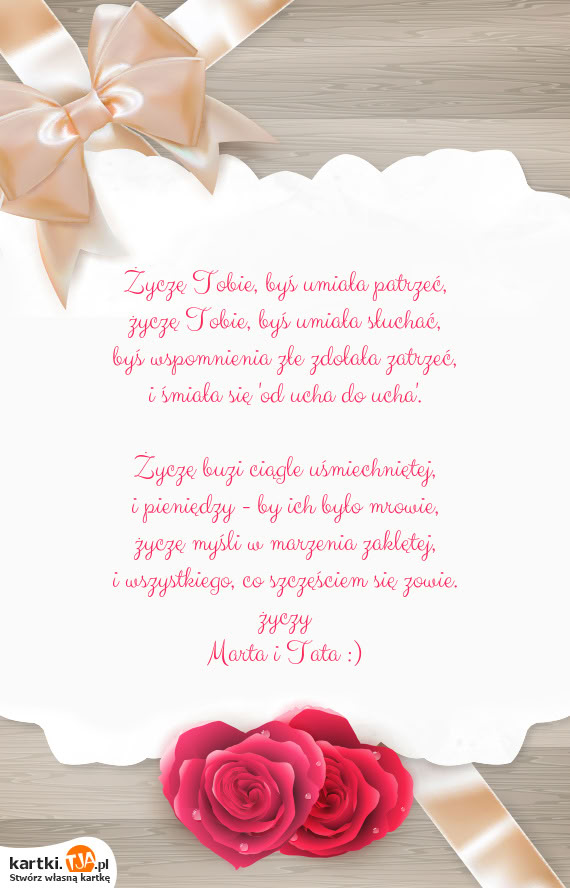 W pierwszym kroku musimy wybrać interesujący nas wzór kartki spośród tych które są dostępne. Możemy przeglądnąć je wszystkie lub wybrać kategorie, która pasuje do okazji, na przykład "świąteczne", "imieninowe" czy "urodzinowe". Kiedy już podejmiemy decyzję, przenosimy się w dół strony, gdzie znajdziemy miejsce na wpisanie odpowiedniego tekstu na kartkę. Każda z nich zawiera już życzenia, które możemy pozostawić jedynie się podpisują lub całkowicie je edytować. Co bardzo ważne z boku mamy cały czas podgląd na wygląd kartki i na wszystkie zmiany, które wprowadzamy. Jeśli uznamy, że kartka jest gotowa wybieramy opcję jej pobranie lub też zapisania i wysłania do wybranej osoby poprzez skopiowanie odpowiedniego linka.