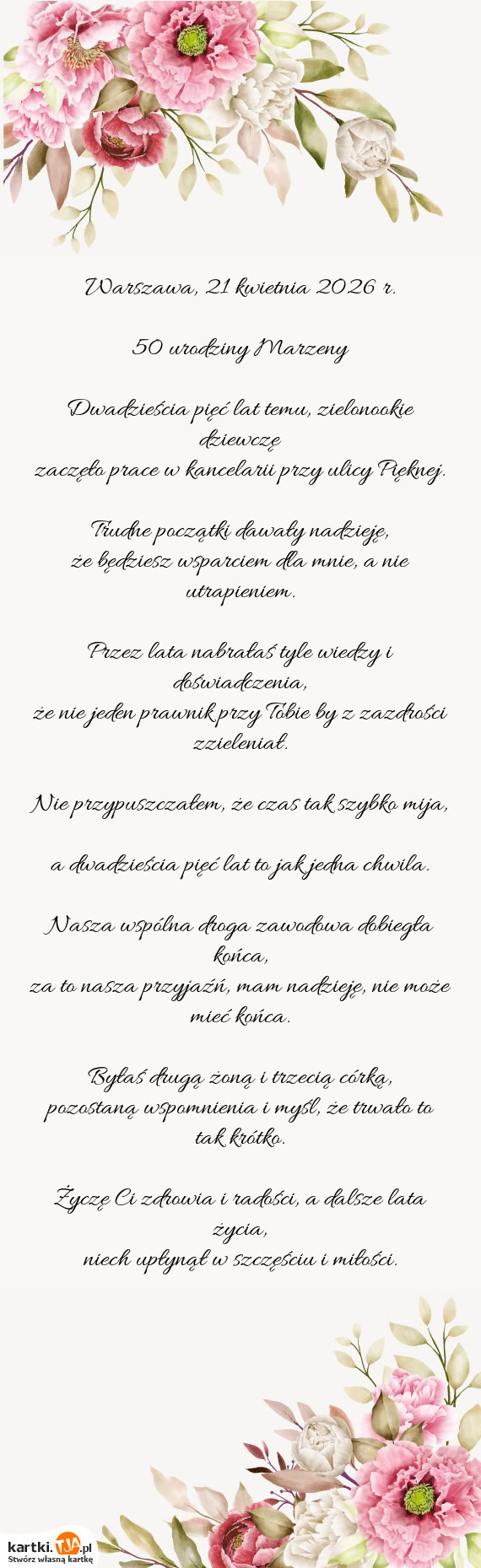 W pierwszym kroku musimy wybrać interesujący nas wzór kartki spośród tych które są dostępne. Możemy przeglądnąć je wszystkie lub wybrać kategorie, która pasuje do okazji, na przykład "świąteczne", "imieninowe" czy "urodzinowe". Kiedy już podejmiemy decyzję, przenosimy się w dół strony, gdzie znajdziemy miejsce na wpisanie odpowiedniego tekstu na kartkę. Każda z nich zawiera już życzenia, które możemy pozostawić jedynie się podpisują lub całkowicie je edytować. Co bardzo ważne z boku mamy cały czas podgląd na wygląd kartki i na wszystkie zmiany, które wprowadzamy. Jeśli uznamy, że kartka jest gotowa wybieramy opcję jej pobranie lub też zapisania i wysłania do wybranej osoby poprzez skopiowanie odpowiedniego linka.