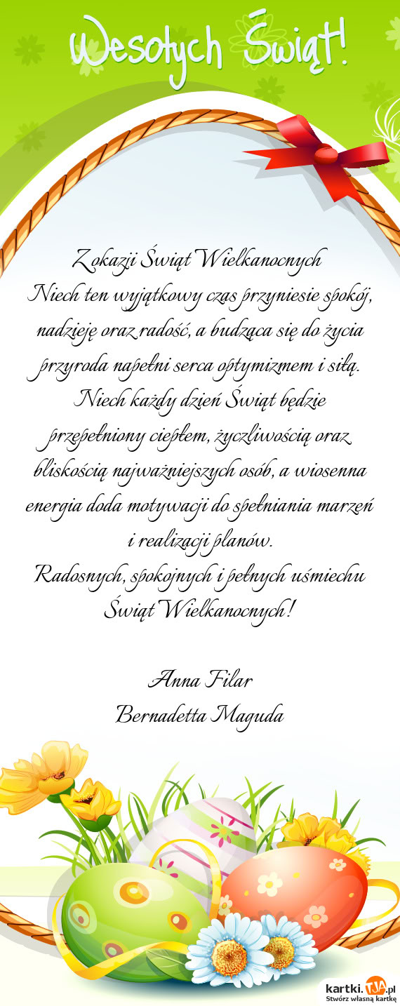 Bardzo przydatną opcją, dla tych osób które nie mają czasu lub po prostu nie chcą tworzyć własnej kartki, jest możliwość wybrania gotowych wzorów, również uporządkowanych według okazji. Jest ich naprawdę wiele, szczególnie tych z okazji popularnych świąt, więc z pewnością każdy wyszuka coś odpowiedniego. Jeżeli mamy zamiar powracać na stronę kartki.tja.pl i tworzyć kolejne kartki dla naszych bliskich, warto stworzyć własne konto. Dzięki temu po zalogowaniu się znajdziemy je wszystkie w zakładce " Moje kartki" i będziemy mogli skorzystać z nich ponownie.