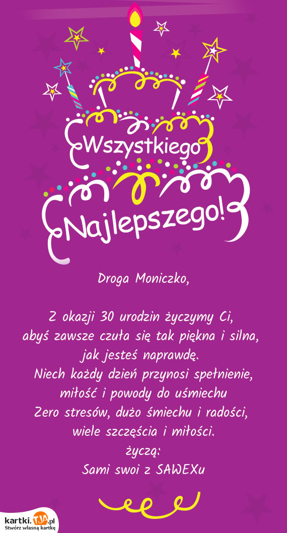 Bardzo przydatną opcją, dla tych osób które nie mają czasu lub po prostu nie chcą tworzyć własnej kartki, jest możliwość wybrania gotowych wzorów, również uporządkowanych według okazji. Jest ich naprawdę wiele, szczególnie tych z okazji popularnych świąt, więc z pewnością każdy wyszuka coś odpowiedniego. Jeżeli mamy zamiar powracać na stronę kartki.tja.pl i tworzyć kolejne kartki dla naszych bliskich, warto stworzyć własne konto. Dzięki temu po zalogowaniu się znajdziemy je wszystkie w zakładce " Moje kartki" i będziemy mogli skorzystać z nich ponownie.