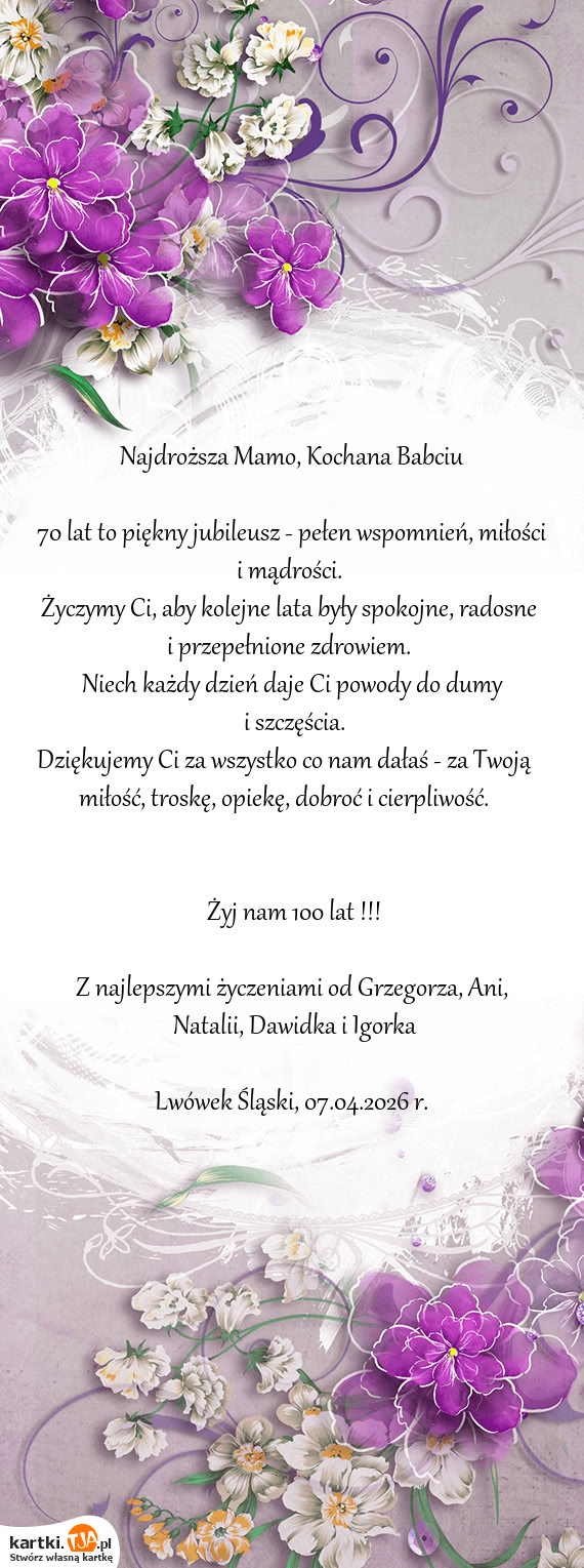 Bardzo przydatną opcją, dla tych osób które nie mają czasu lub po prostu nie chcą tworzyć własnej kartki, jest możliwość wybrania gotowych wzorów, również uporządkowanych według okazji. Jest ich naprawdę wiele, szczególnie tych z okazji popularnych świąt, więc z pewnością każdy wyszuka coś odpowiedniego. Jeżeli mamy zamiar powracać na stronę kartki.tja.pl i tworzyć kolejne kartki dla naszych bliskich, warto stworzyć własne konto. Dzięki temu po zalogowaniu się znajdziemy je wszystkie w zakładce " Moje kartki" i będziemy mogli skorzystać z nich ponownie.