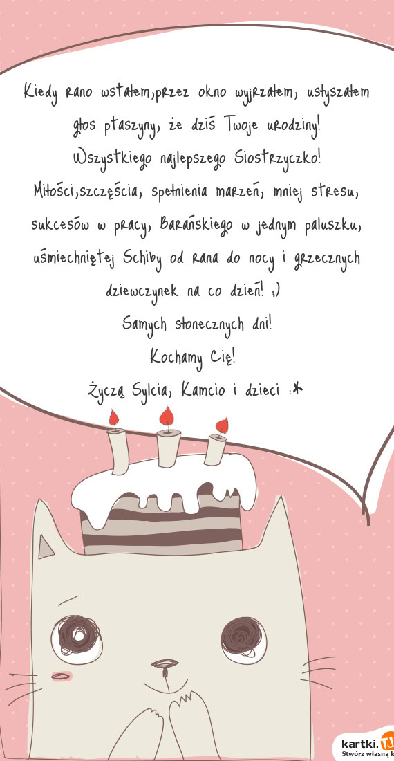 W pierwszym kroku musimy wybrać interesujący nas wzór kartki spośród tych które są dostępne. Możemy przeglądnąć je wszystkie lub wybrać kategorie, która pasuje do okazji, na przykład "świąteczne", "imieninowe" czy "urodzinowe". Kiedy już podejmiemy decyzję, przenosimy się w dół strony, gdzie znajdziemy miejsce na wpisanie odpowiedniego tekstu na kartkę. Każda z nich zawiera już życzenia, które możemy pozostawić jedynie się podpisują lub całkowicie je edytować. Co bardzo ważne z boku mamy cały czas podgląd na wygląd kartki i na wszystkie zmiany, które wprowadzamy. Jeśli uznamy, że kartka jest gotowa wybieramy opcję jej pobranie lub też zapisania i wysłania do wybranej osoby poprzez skopiowanie odpowiedniego linka.