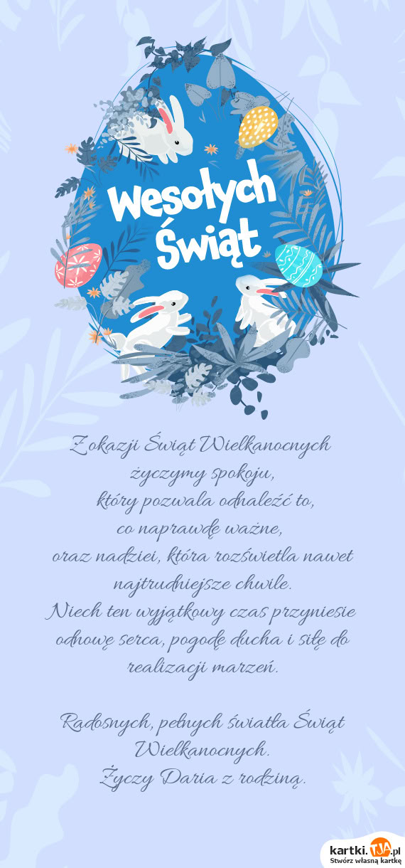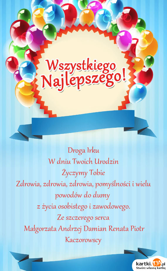 Bardzo przydatną opcją, dla tych osób które nie mają czasu lub po prostu nie chcą tworzyć własnej kartki, jest możliwość wybrania gotowych wzorów, również uporządkowanych według okazji. Jest ich naprawdę wiele, szczególnie tych z okazji popularnych świąt, więc z pewnością każdy wyszuka coś odpowiedniego. Jeżeli mamy zamiar powracać na stronę kartki.tja.pl i tworzyć kolejne kartki dla naszych bliskich, warto stworzyć własne konto. Dzięki temu po zalogowaniu się znajdziemy je wszystkie w zakładce " Moje kartki" i będziemy mogli skorzystać z nich ponownie.