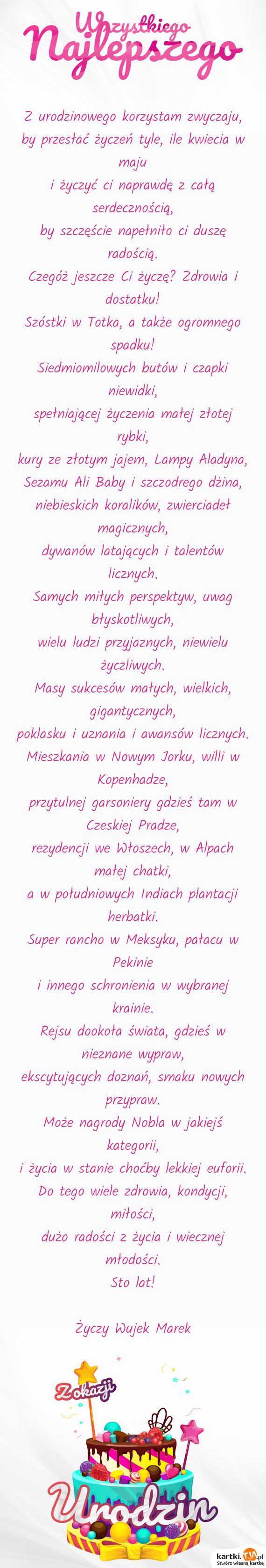 Na stronie głównej Kartki.tja.pl znajduje się bardzo prosty w obsłudze generator oryginalnych kartek dosłownie na każdą możliwą okazję i w dodatku bez konieczności logowania.