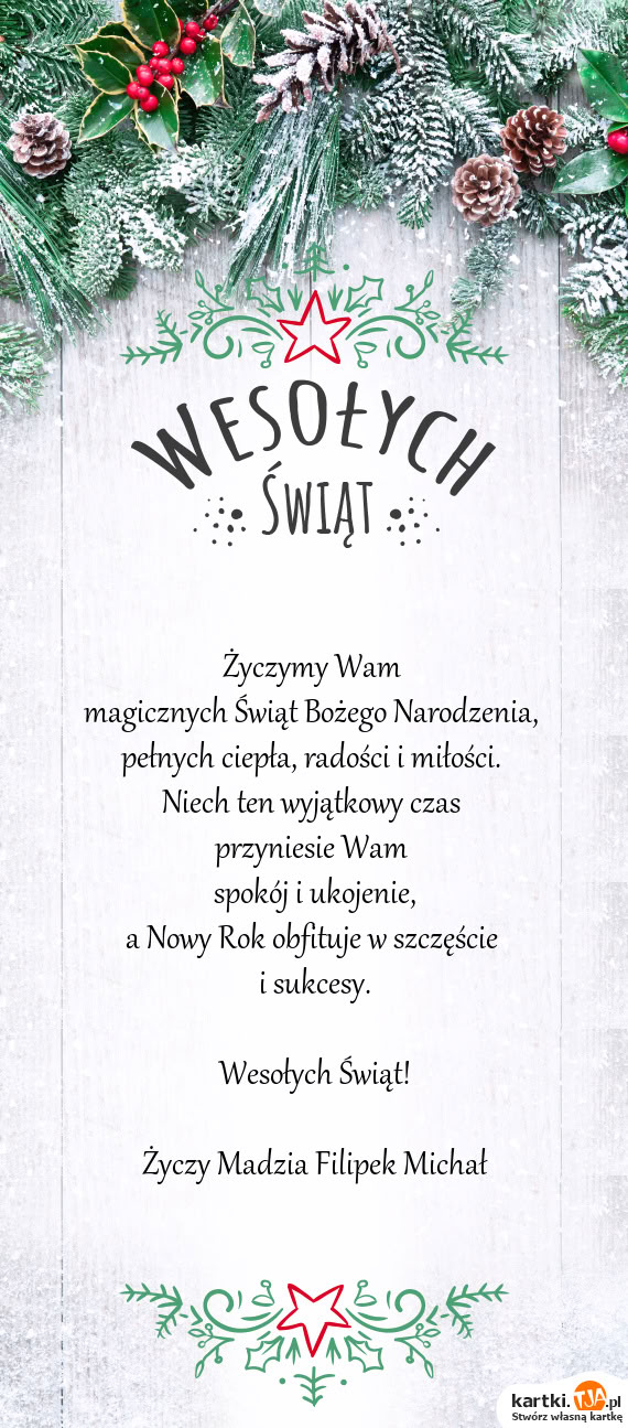 Radosnych Świąt Bożego Narodzenia oraz zdrowia, szczęścia, pomyślności i spełnienia marzeń