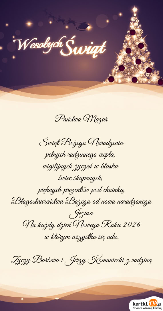„Ciepłych, spokojnych Świąt Bożego Narodzenia, pełnych rodzinnej miłości, radości i nadzie