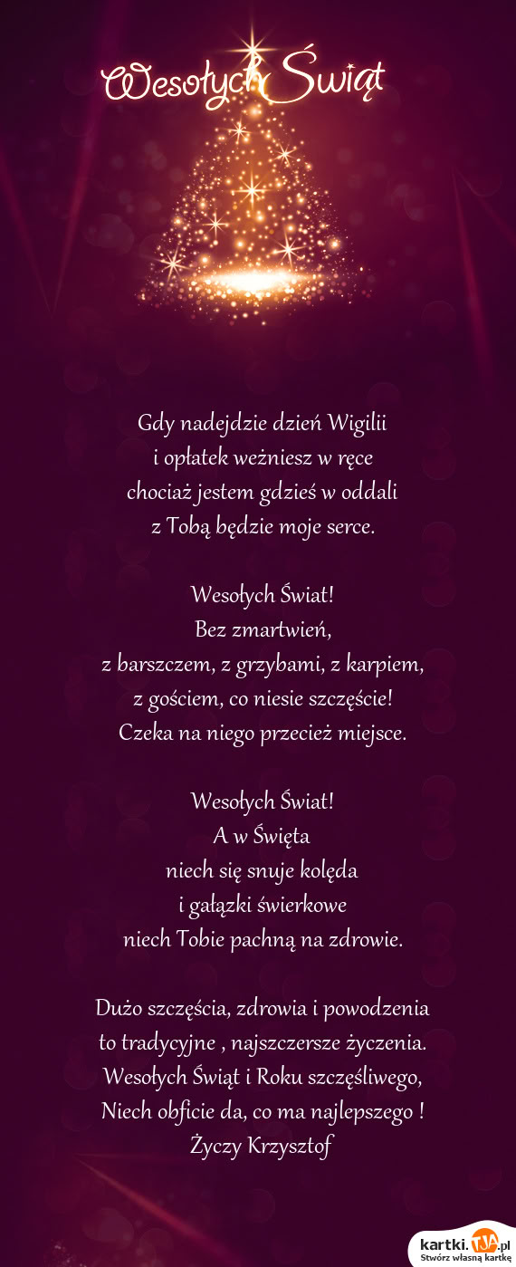 Niech wigilijny wieczór upłynie w atmosferze miłości, bliskości i rodzinnego ciepła przy wspó