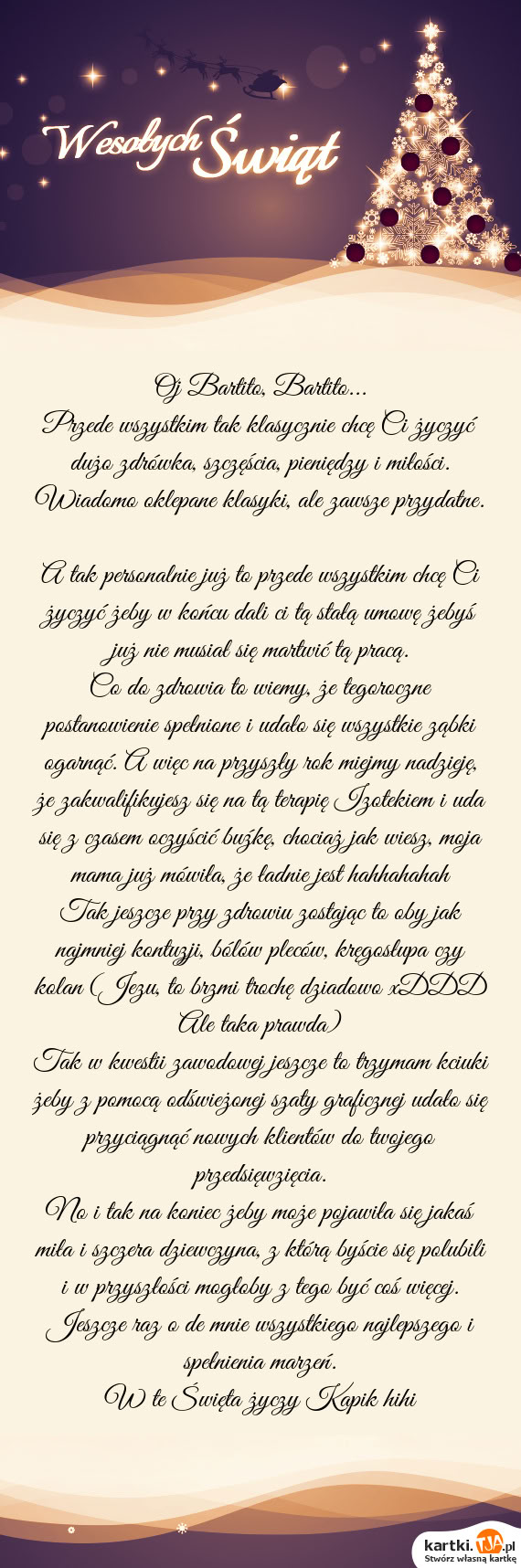 Wesołych ŚwiątMama i Tata póki co z Kanady TWOJE IMIĘ