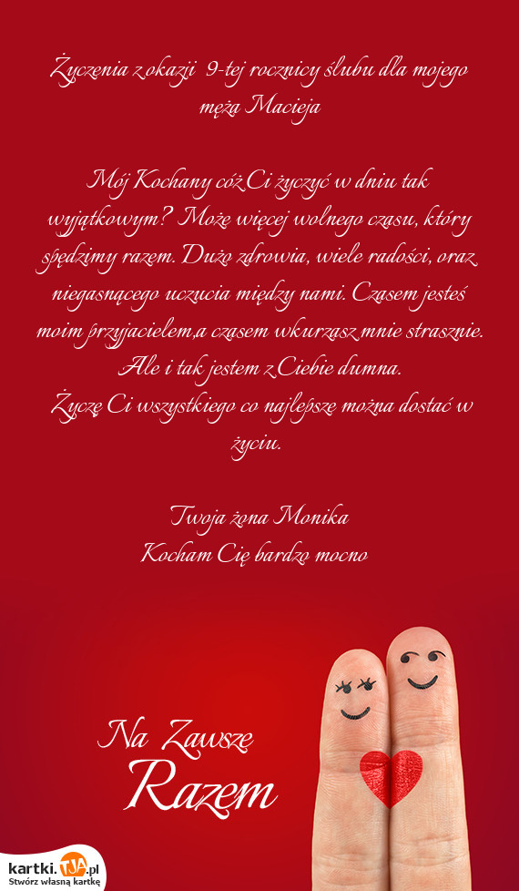 Życzenia z okazji 9-tej rocznicy ślubu dla mojego męża Macieja
