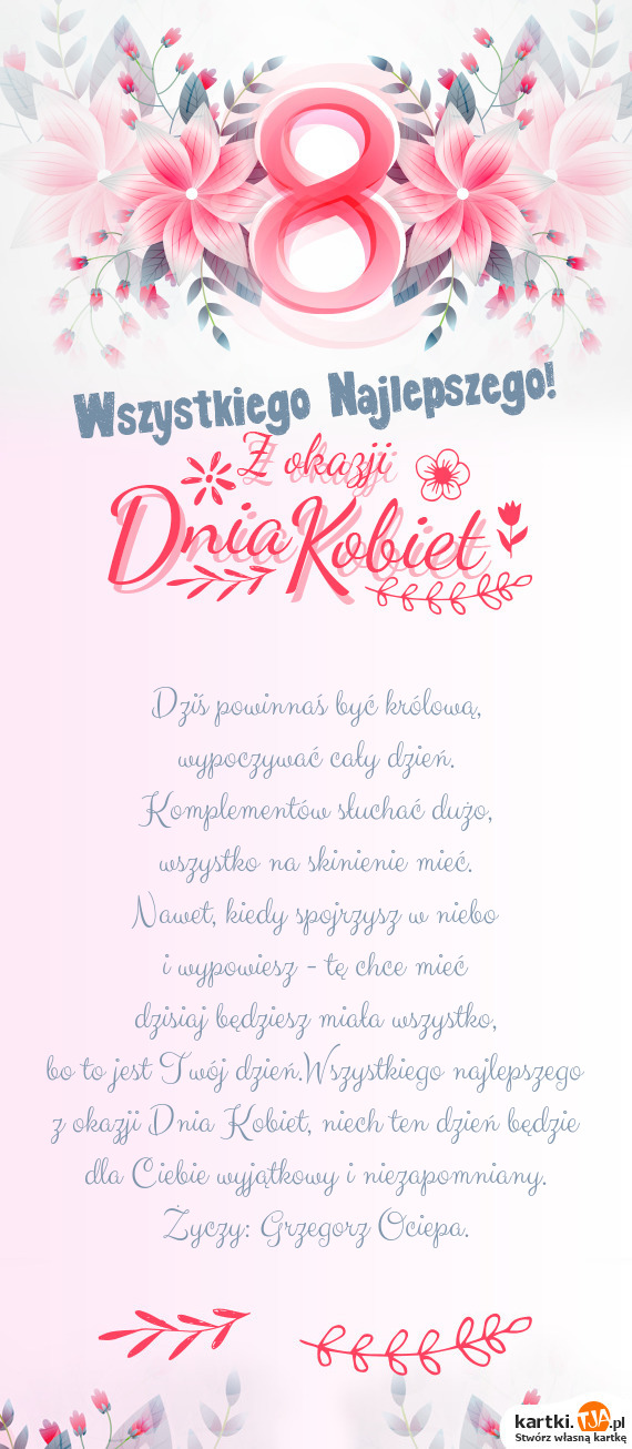 Dziś powinnaś być królową, wypoczywać cały dzień. Komplementów