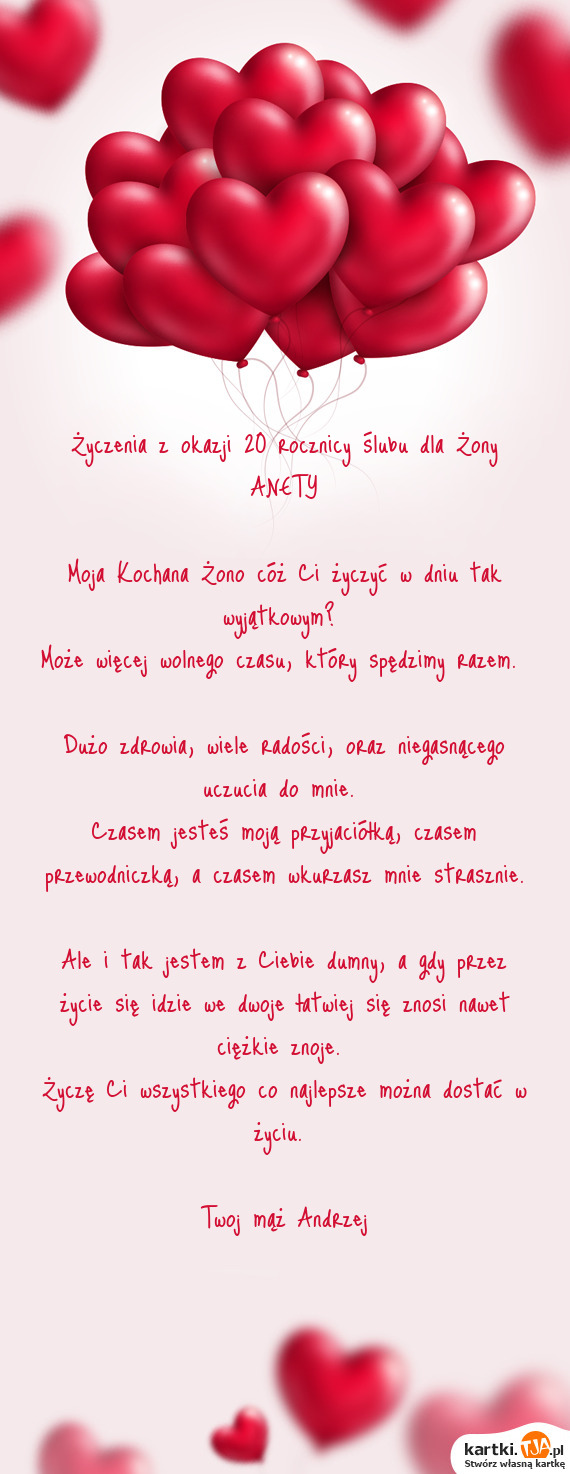 Moja ukochana słuchaj proszę, dziś życzenia Ci przynoszę. Żyj