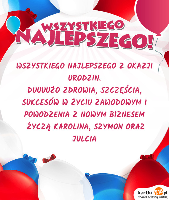 DUUUUŻO ZDROWIA, SZCZĘŚCIA, SUKCESÓW W ŻYCIU ZAWODOWYM I POWODZENIA Z NOWYM BIZNESEM