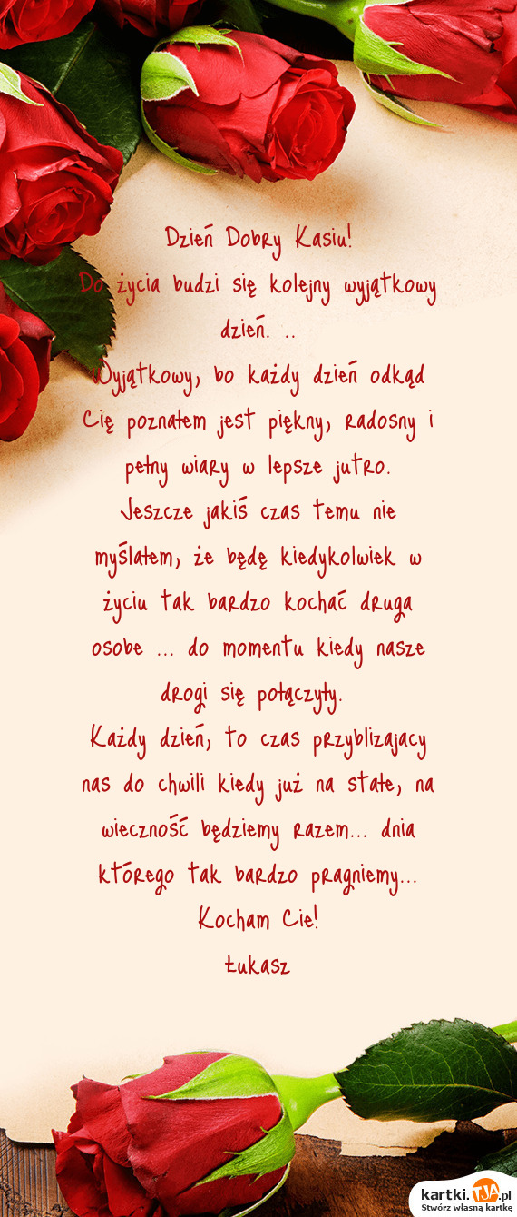 Wyjątkowy, bo każdy dzień odkąd Cię poznałem jest piękny, radosny i pełny wiary w lepsze jut