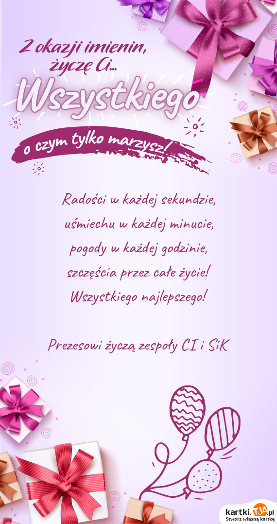 Usia z Okazji Twoich urodzin, spełnienia marzeń