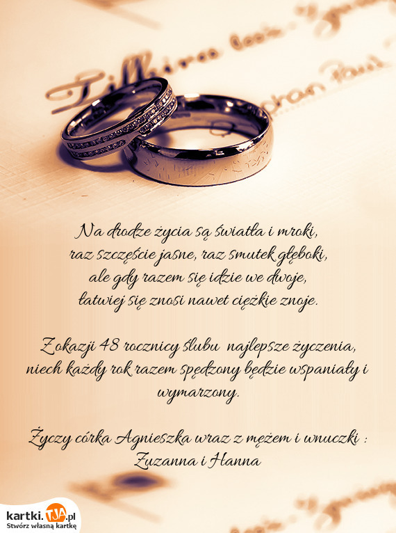 Z okazji 48 rocznicy ślubu najlepsze życzenia, niech każdy rok razem spędzony będzie wspaniał