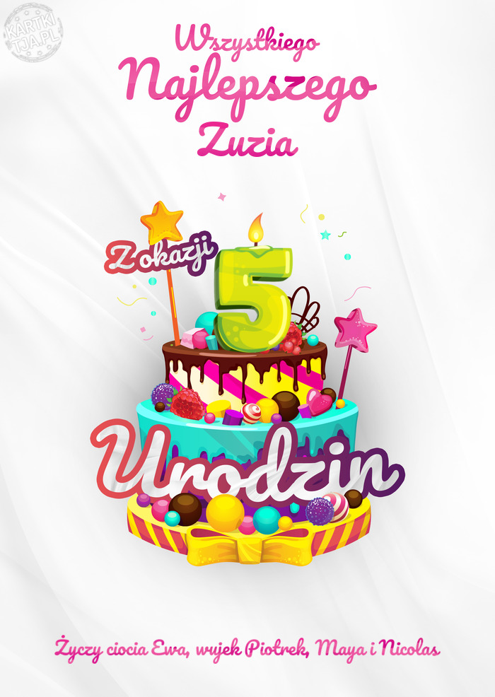 Zuzia, Wszystkiego najlepszego z okazji 5 urodzin ciocia Ewa, wujek Piotrek, Maya i Nicolas