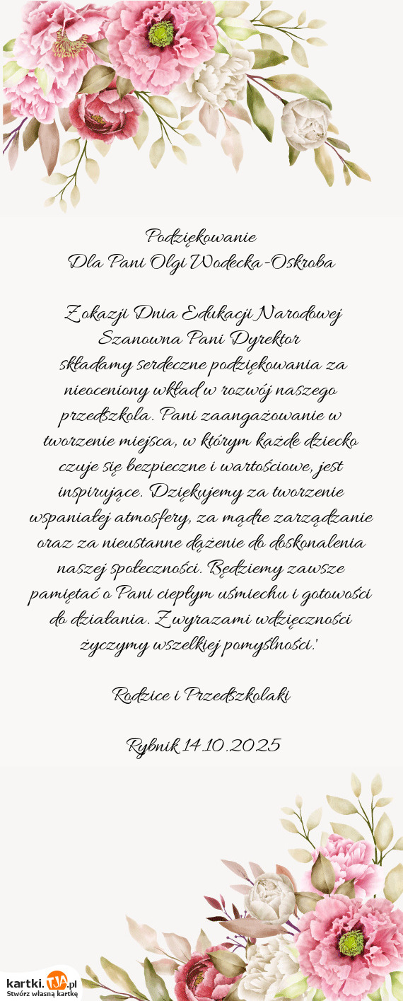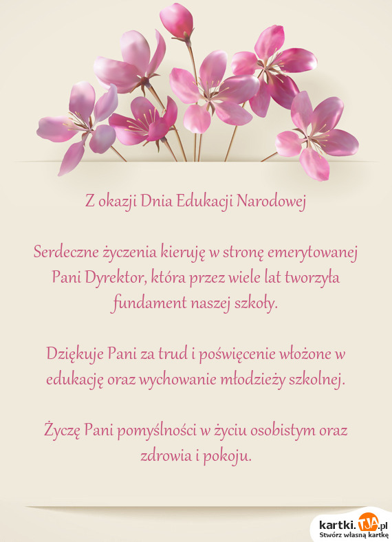Serdeczne życzenia kieruję w stronę emerytowanej Pani Dyrektor, która przez wiele lat tworzyła