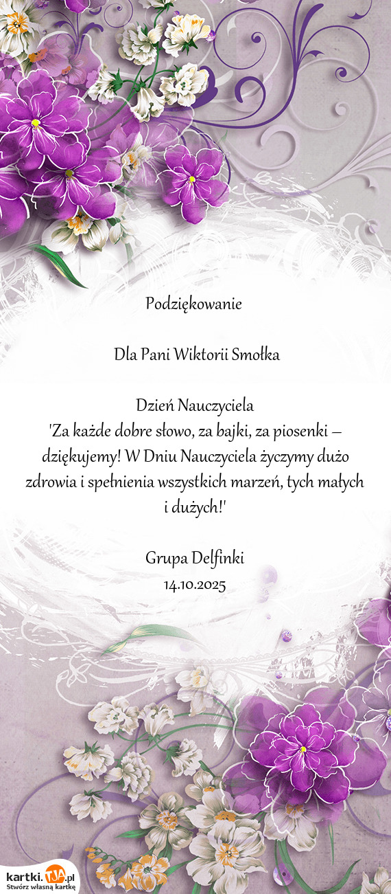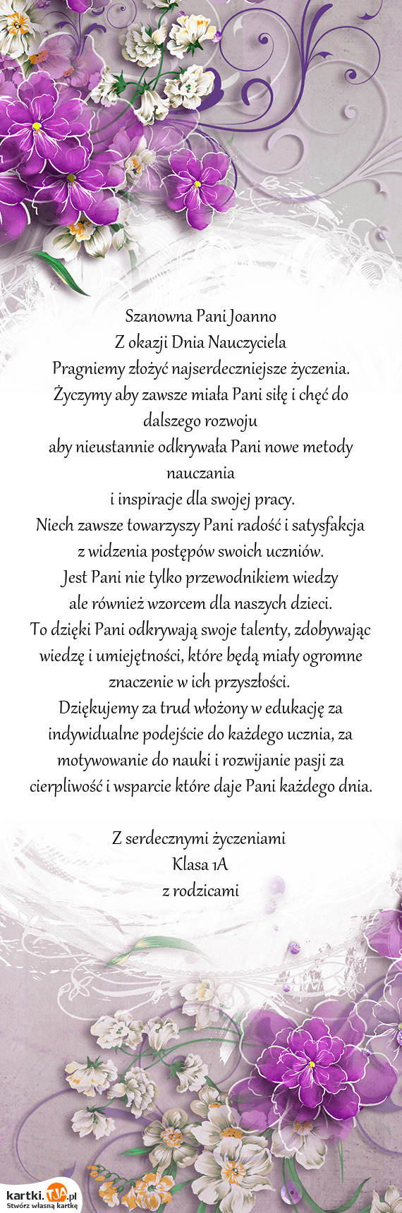 Z okazji Dnia Nauczyciela życzymy Pani tyle cierpliwości, ile błędów w naszych zeszytach, i tyl