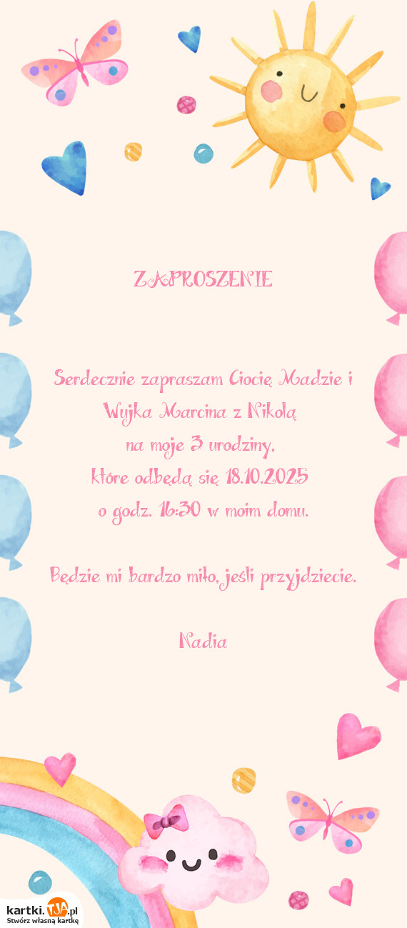 Serdecznie zapraszam Ciocię Madzie i Wujka Marcina z Nikolą