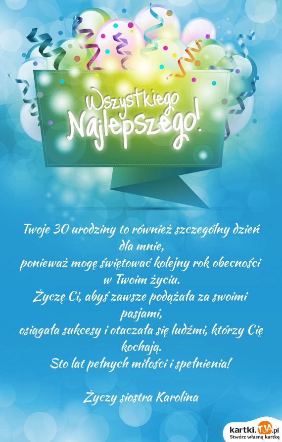 Twoje 30 urodziny to również szczególny dzień dla mnie