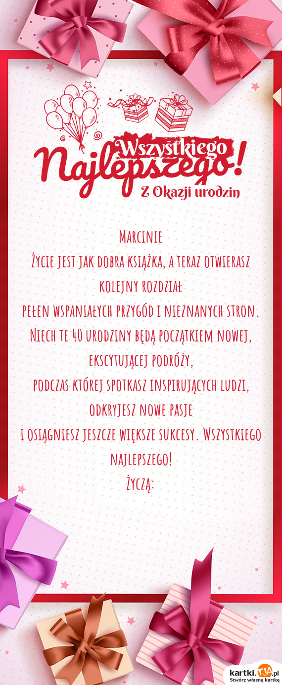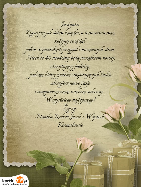 Życzą: Monika, Robert, Jacek i Wojciech Kosmalowie
